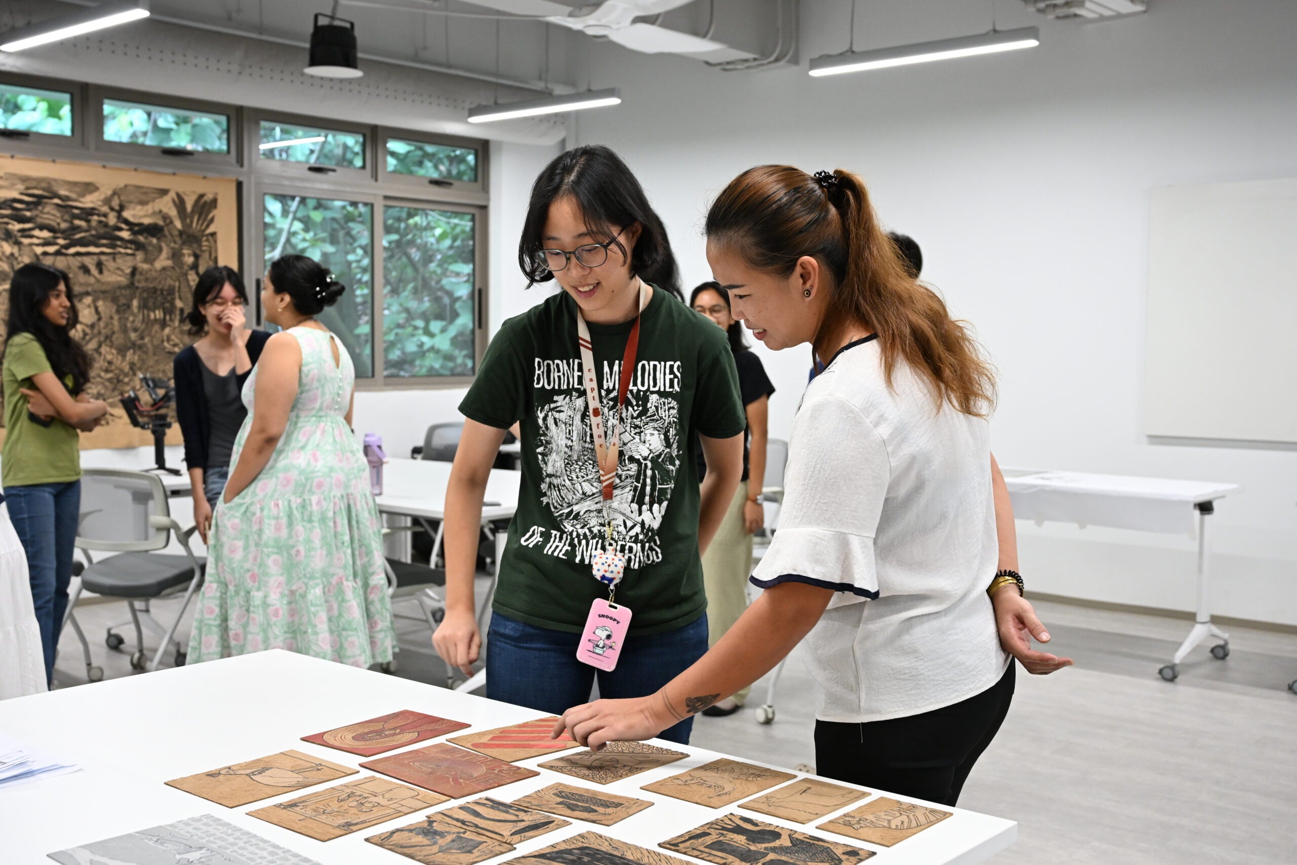 The workshop formed part of the NUS Public Art Initiative, which seeks to deepen the role of public art in enriching student life on campus. Students were invited to co-create a woodcut mural design for the wall at Yusof Ishak House.